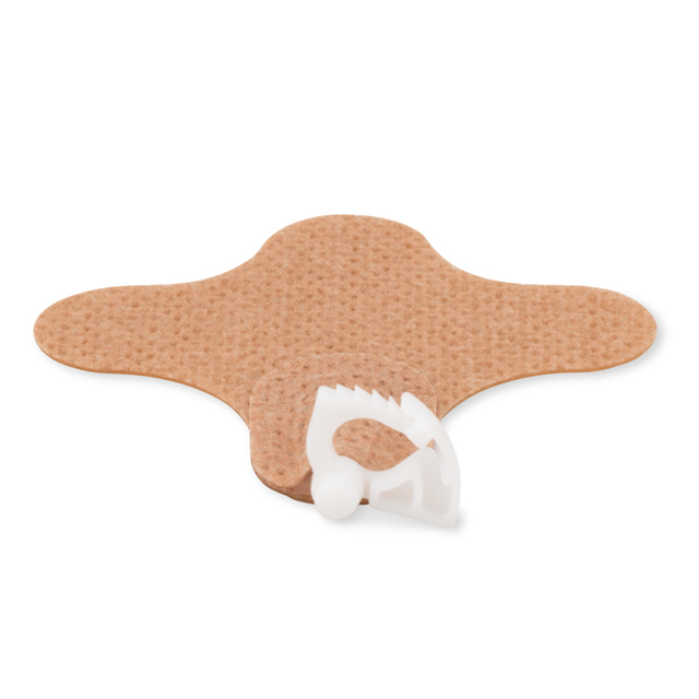 The suction tube attachment device from Hollister provides an easy-to-use alternative to tape for securing tubes and drains. It features a FlexWear skin barrier to help protect the skin and an adjustable clamping mechanism to allow for easy tube positioning and better access for site care.