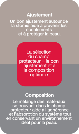 La sélection du bon champ protecteur est indispensable pour optimiser la performance de votre appareillage de stomie. La bonne nouvelle est que votre infirmière spécialisée en stomies peut vous aider à ce niveau.