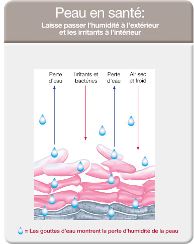 Chaque fois que vous retirez votre champ protecteur, les cellules de la couche externe de la peau subissent un traumatisme. La perte de cette couche protectrice peut mettre à risque l’intégrité et le niveau d’humidité de la peau. Cette perte d’humidité est aussi connue sous le nom de perte d’eau transépidermique (PET). Bien qu’un niveau de PET soit normal, on se doit de limiter cette perte pour éviter la sécheresse et l’irritation de la peau; une telle sécheresse étant connue comme une cause importante de démangeaisons de la peau péristomiale.