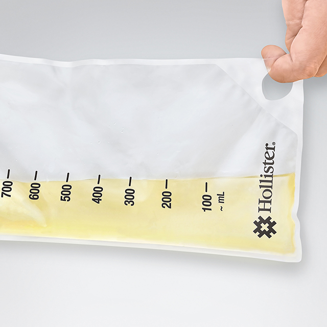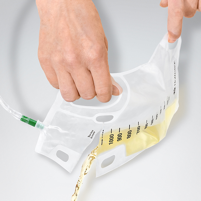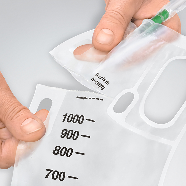 - Le sac collecteur intégré de 1000 ml offre: • une ligne de découpe avec un point d'arrêt • une poignée et un second orrifice pour faciliter la vidange • une valve anti-reflux permettant de prévenir le reflux de l’urine • des lignes imprimées pour aider à surveiller la quantité d’urine • il est transparent pour permettre l’évaluation visuelle de la couleur de l’urine